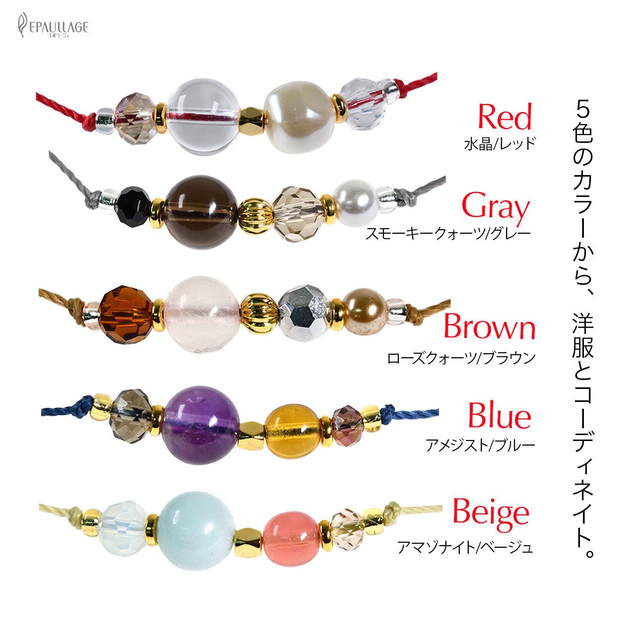 5種類の天然石とワックス加工された紐カラーの組み合わせからお選びいただけます。